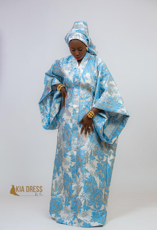 Boubou long marron en soie avec finitions en organza
