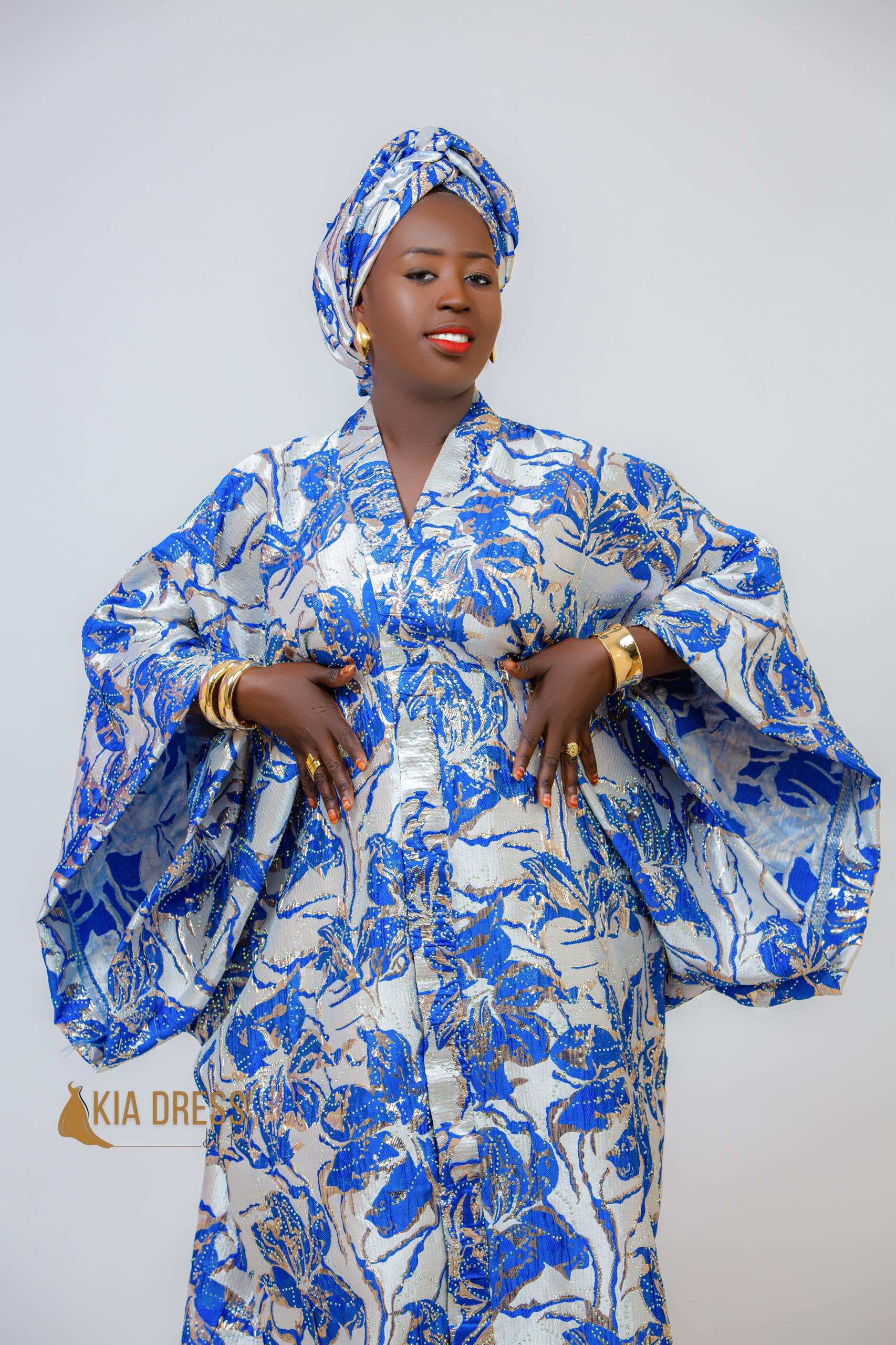 Avec sa coupe ample et son tissu brocart structuré, ce boubou offre une allure majestueuse. Les attaches intérieures permettent de marquer la taille et de souligner la silhouette avec style. Un incontournable chic et tendance.